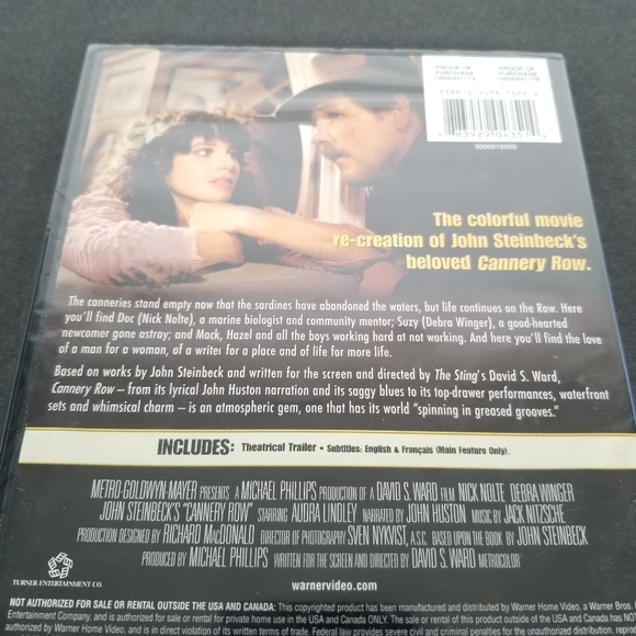 Warner Bros Media Cannery Row Movie Dvd 209 Nick Nolte Debra Winger 982 Poshmark